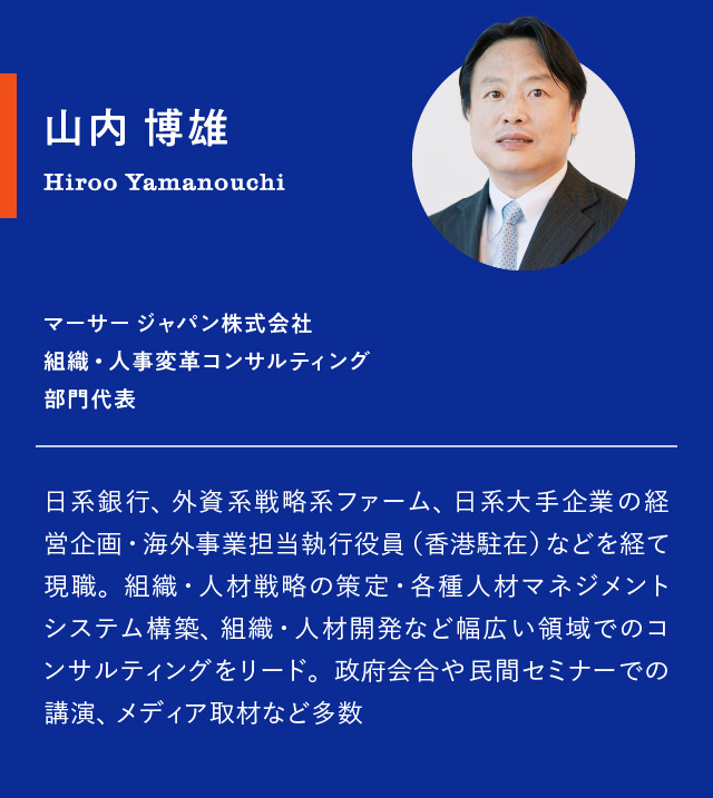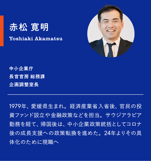 本企画では、制度の立ち上げに関わってきた中小企業庁の赤松寛明氏、中小企業の事業戦略に精通するEYストラテジー・アンド・コンサルティングの池尻能氏、組織・人事変革の専門家であるマーサー ジャパンの山内博雄氏に前後編にわたって話を聞く。
